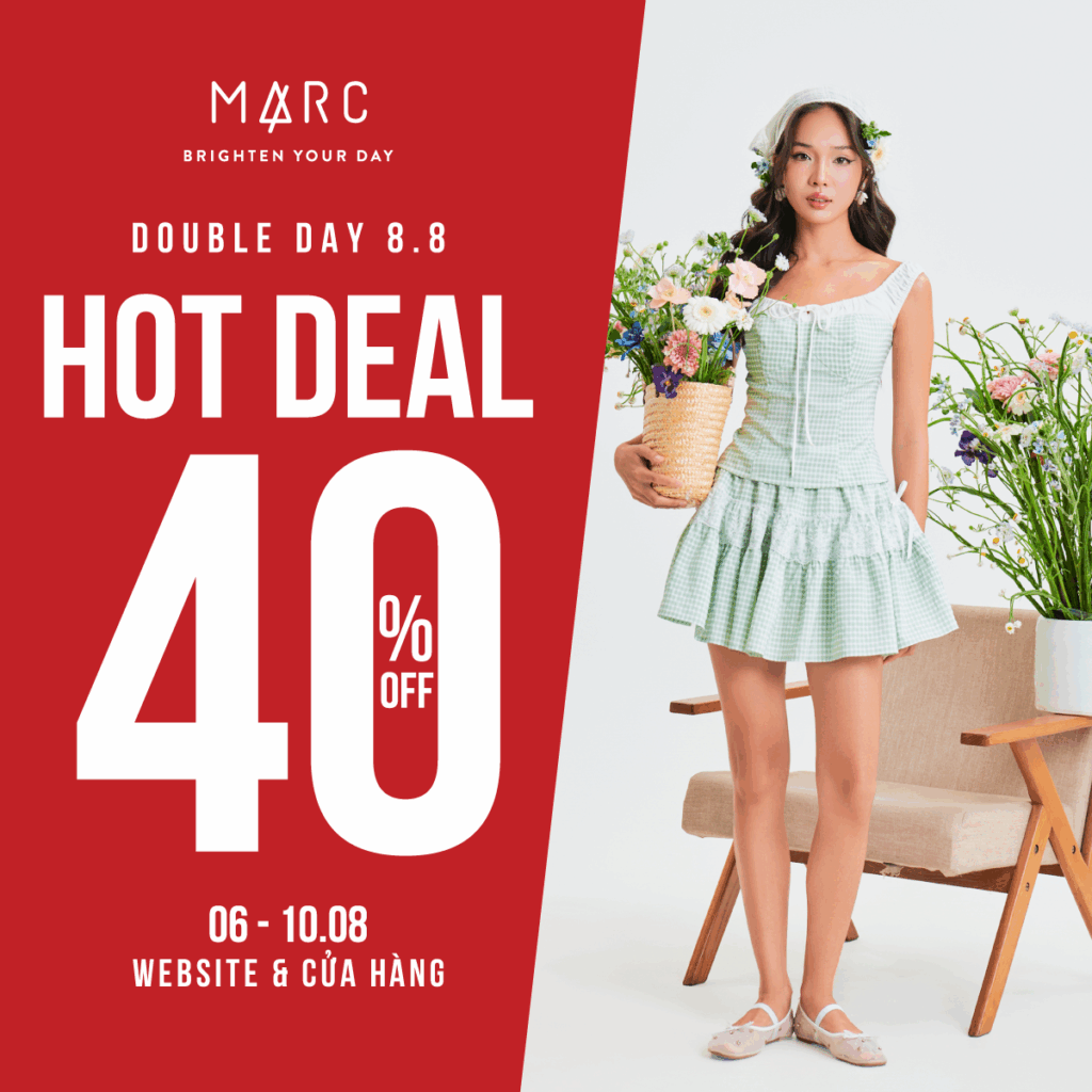 Đại tiệc ngày đôi 8.8 chính thức bùng nổ với ưu đãi choáng ngợp: GIẢM 40% các siêu phẩm váy đầm mùa hè. Các items hot hit sẽ sold out rất nhanh chóng, ghé ngay MARC để F5 tủ đồ thôi nào Nàng ơi!!!