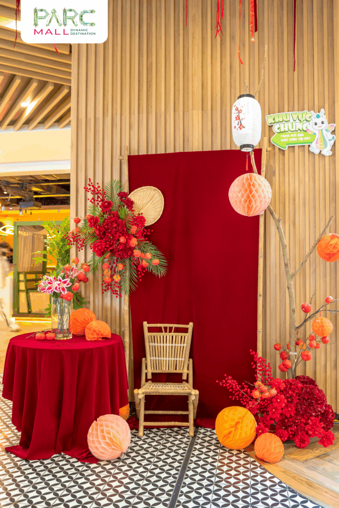 Không dừng lại ở sảnh chính, trang trí xuân tại PARC MALL được triển khai xuyên suốt từ cổng chào Pama đến tầng 4, tầng 5. Mỗi khu vực là một lát cắt khác nhau của mùa Tết – khi truyền thống và hiện đại được kết nối tinh tế.